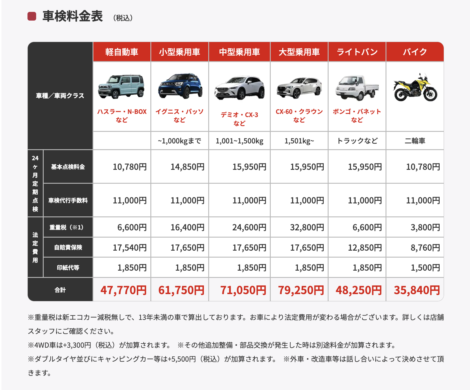 いつもオートセールス龍グループをご利用いただき誠にありがとうございます。このたび印紙代等の値上がりにより、車検料金の価格が変更となりましたのでお知らせいたします。引き続き、ご愛顧のほど、よろしくお願いいたします。