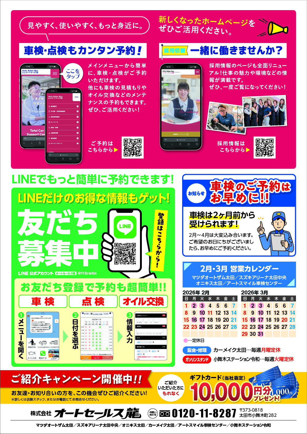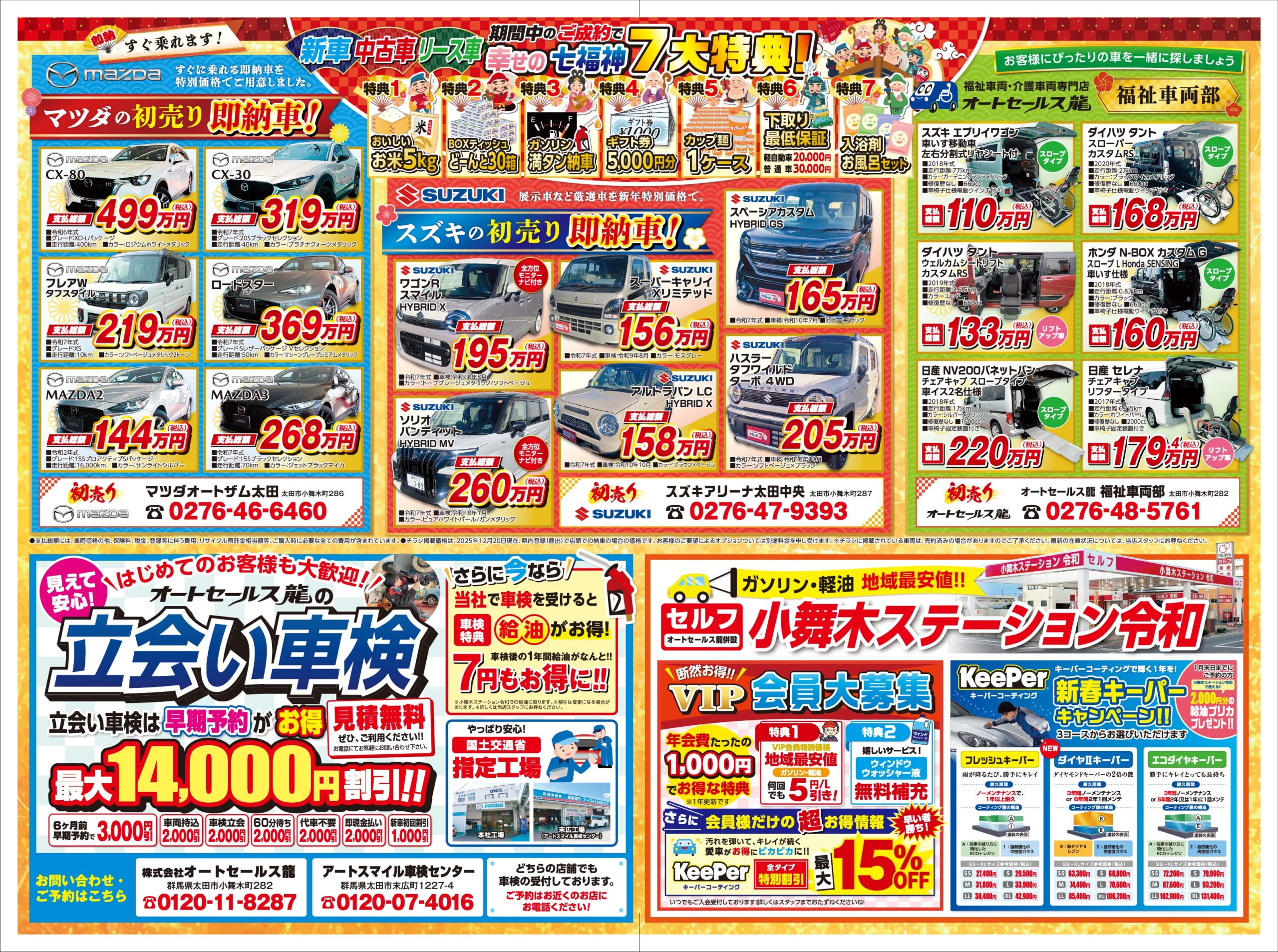 オートセールス龍では、1/2金曜より1/12月曜祝日まで、新春初売りセールを開催いたします。