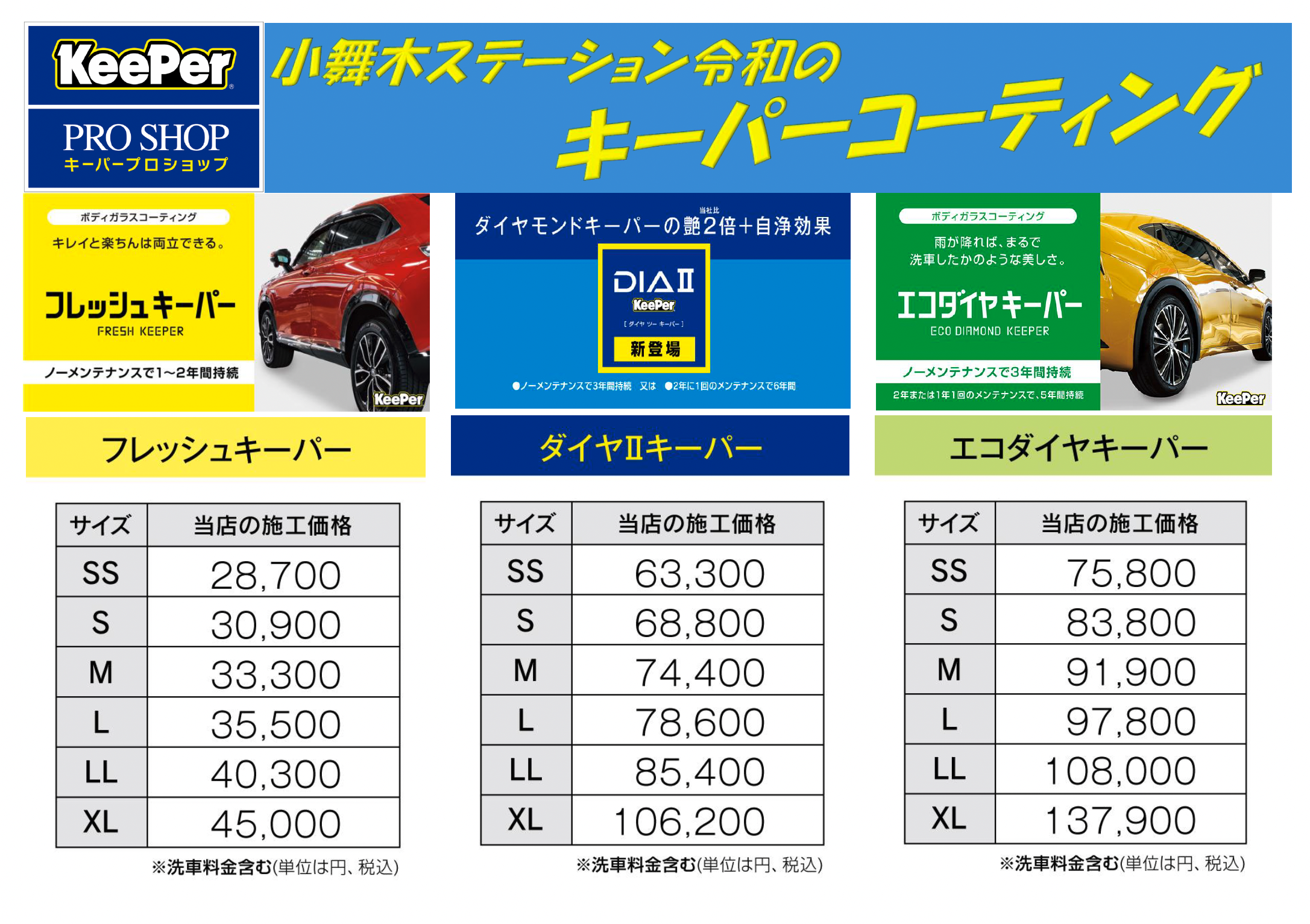 1月よりキーパーの料金が改定されました。改定後の金額は下記の施工料金表を