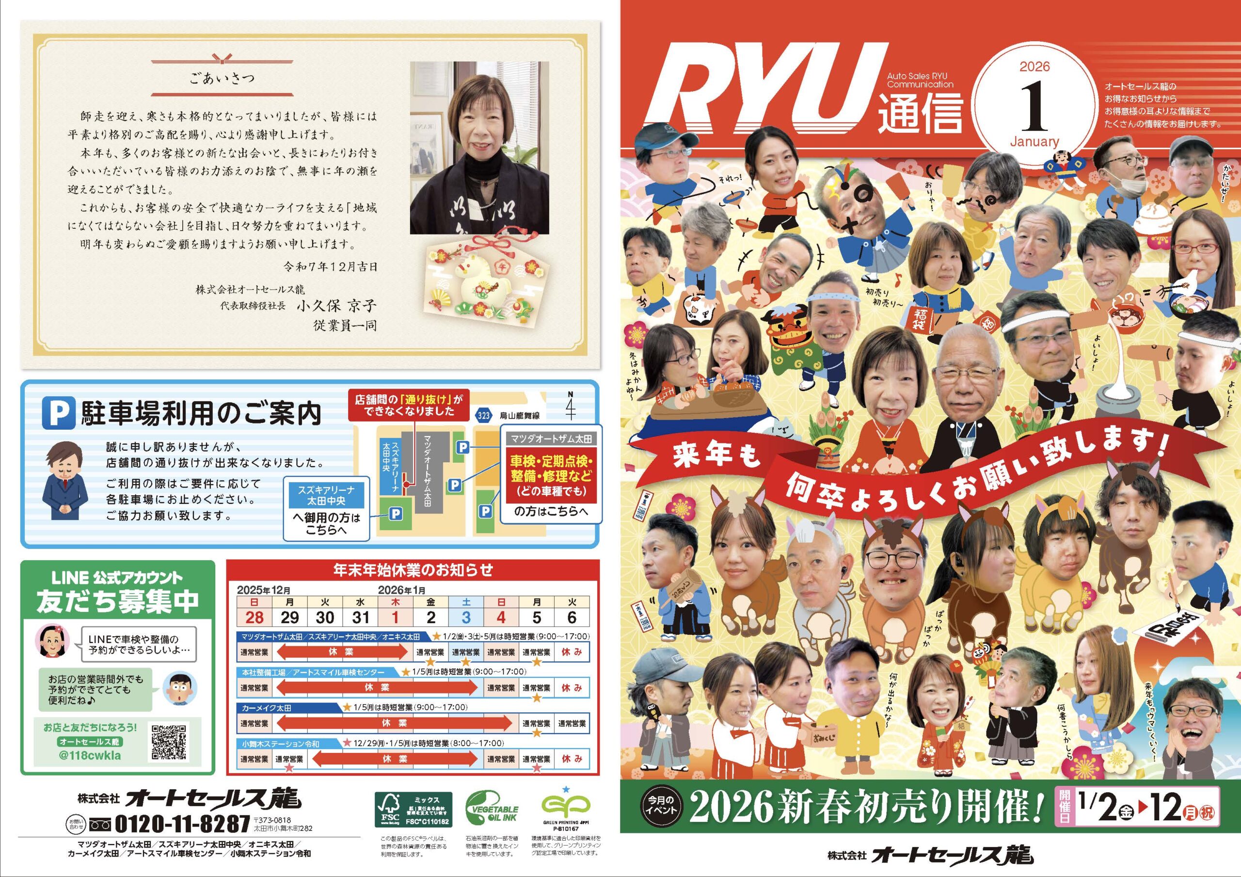来たる2026年1月2日より12日までオートセールス龍では