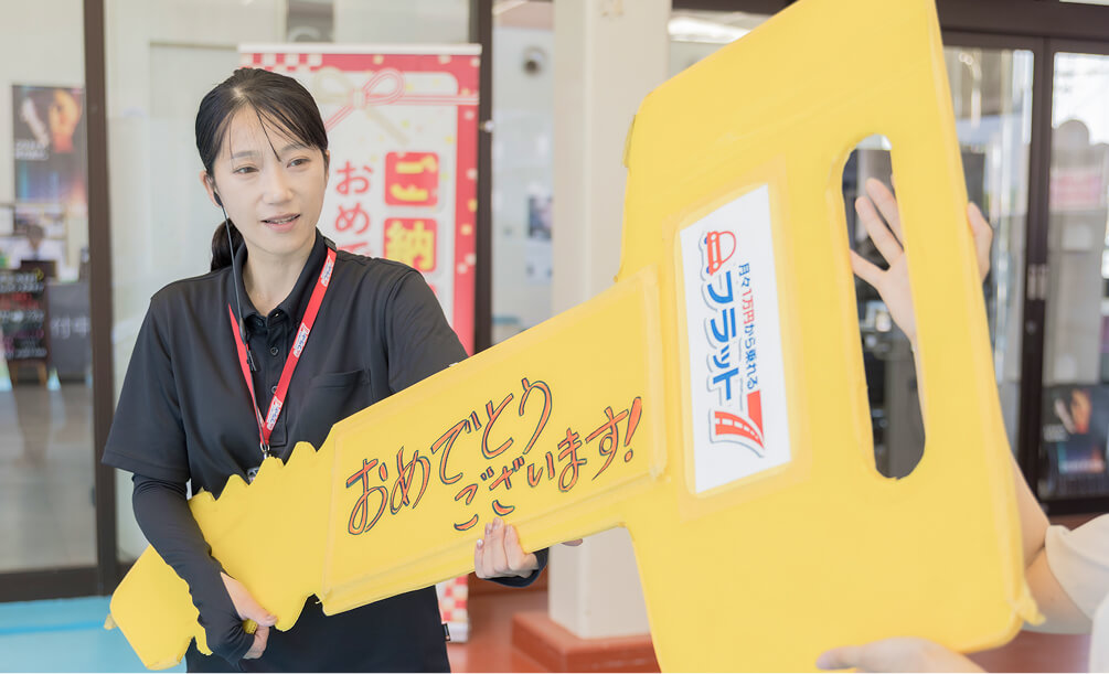 前職は物流関係で肉体負担が大きく、長く続ける自信が持てずに転職することに。未経験歓迎で初心者でもしっかり教えてもらえるとあったので応募。会社を訪れてみたら、すごく雰囲気がよくて、入社後も人間関係に恵まれ、本当に丁寧に指導してもらえました。新車販売を経験して、いまの受け持ちはカーリース。異なる仕事の難しさがありますが、変わらないのは一人ひとりのお客様、一件一件のご相談を大切にすること。ご契約いただいた瞬間はもちろんですが、納車の日にも大きな達成感が湧きます。その後、お知り合いをご紹介いただくこともあり、その時は、励みになります。